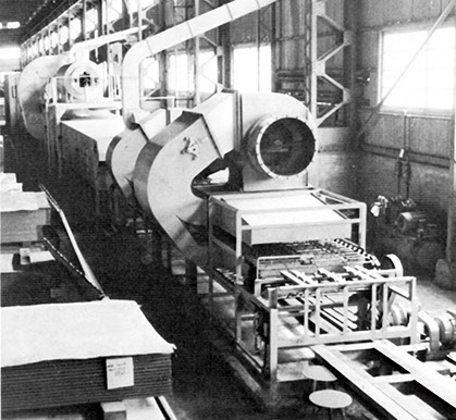 スラットコンベアーを使用し、平らに鋼板を搬送する方法で塗膜面に均一に熱風を吹付け、均一の焼付条件で急速乾燥できる装置です。