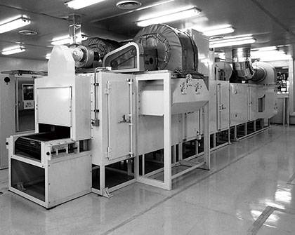 乗用車、トラック、農機具、建設機械などに使用されているエアーフィルターおよび、オイルフィルター用濾紙に塗布されたフェノール樹脂を特殊熱風ノズルにより、完全硬化させる高性能な焼成装置です。