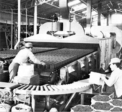 これまで長時間かけて低温乾燥してきた着火練炭の乾燥を、1.5時間以内で完全乾燥できる画期的な乾燥装置です。着火練炭は着火促進剤への引火限界温度で乾燥するため、非常に正確な温度維持を実現した装置です。